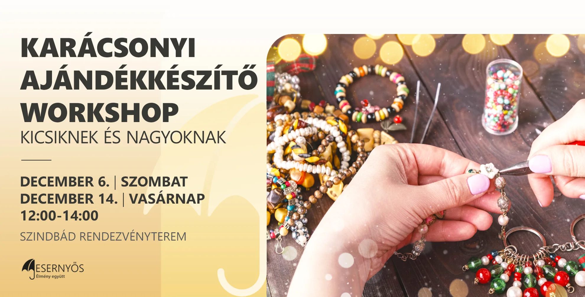 Szeretnél saját készítésű ajándékot adni szeretteidnek karácsonykor? Csatlakozz hamisítatlan karácsonyi hangulatú workshopunkhoz, ahol szuper gyöngy karkötő és kulcstartó készítő készségekre tehetsz szert!
