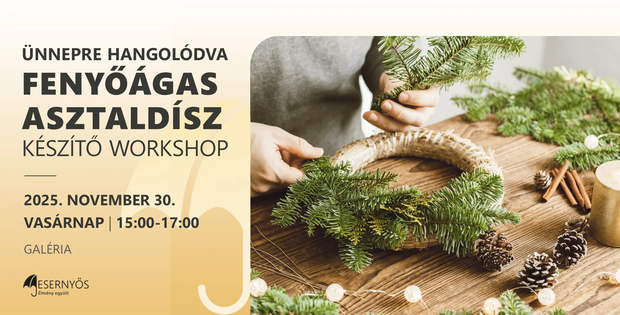Az adventi időszakban tartsatok velünk egy hangulatos kézműves foglalkozásra, ahol fenyőágas asztaldíszt készíthettek befőttesüvegből! A foglalkozást Méth Frida, szakképzett foglalkozásvezető tartja. A részvétel ingyenes és előzetes regisztrációhoz nem kötött. A foglalkozás 7 éves kortól ajánlott!