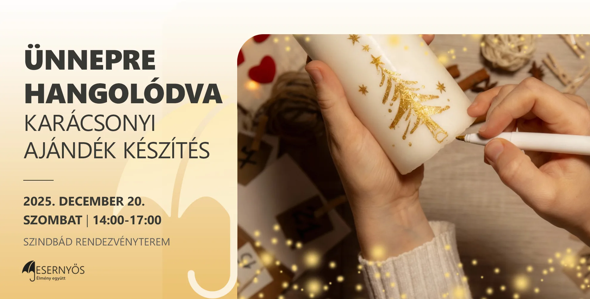 A karácsonyi kézműves foglalkozás remek módja annak, hogy ünnepi hangulatba kerüljünk, kreatívan kikapcsolódjunk és saját készítésű ajándékokat készítsünk együtt! Tartsatok velünk, hogy az ünnepre hangolódva ajándékot készítsünk: különböző alakú és formájú gyertyákat dekorálunk, kompozíciókat készítünk, kanócozunk és csomagolunk.