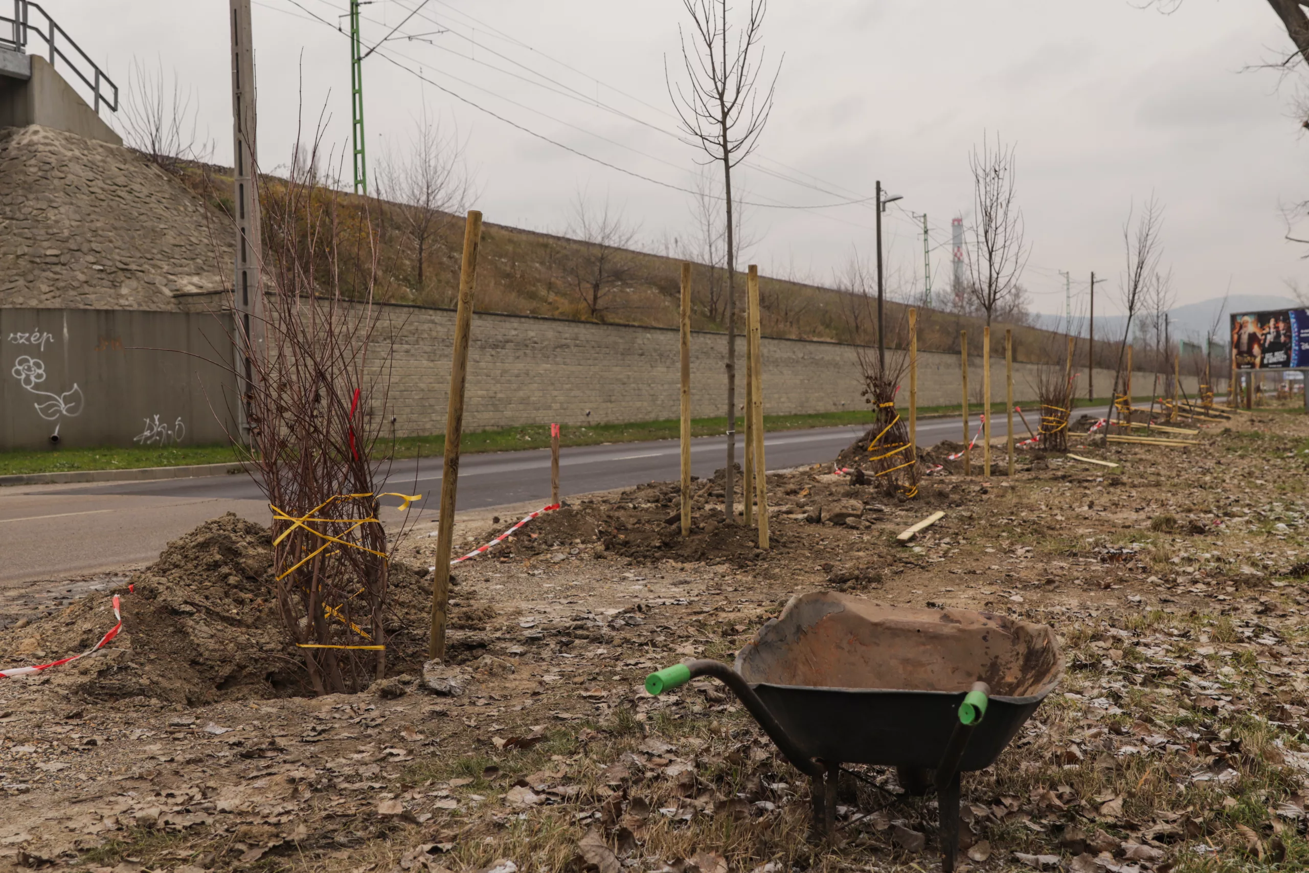117 darab fából álló fasort alakítunk ki a Pók utca nyomvonalát követve, a fasor a Nánási úttól indul. A fákat egymástól 4,2 méteres tőtávolságra, az úttest szegélyétől három méterre fogjuk elültetni.