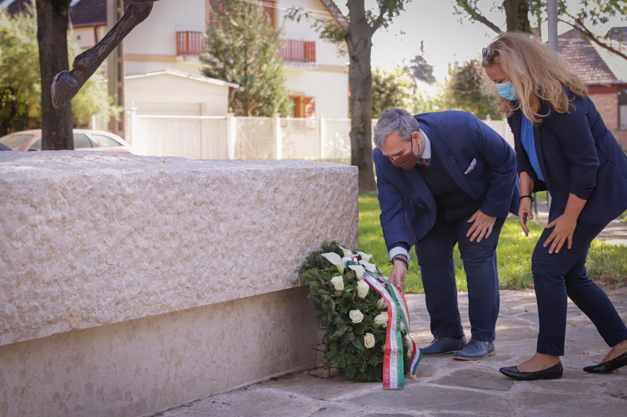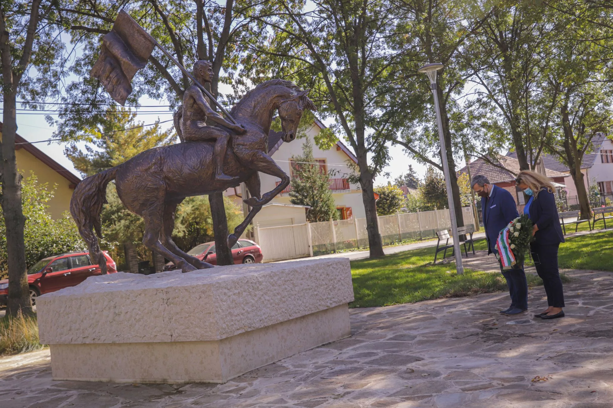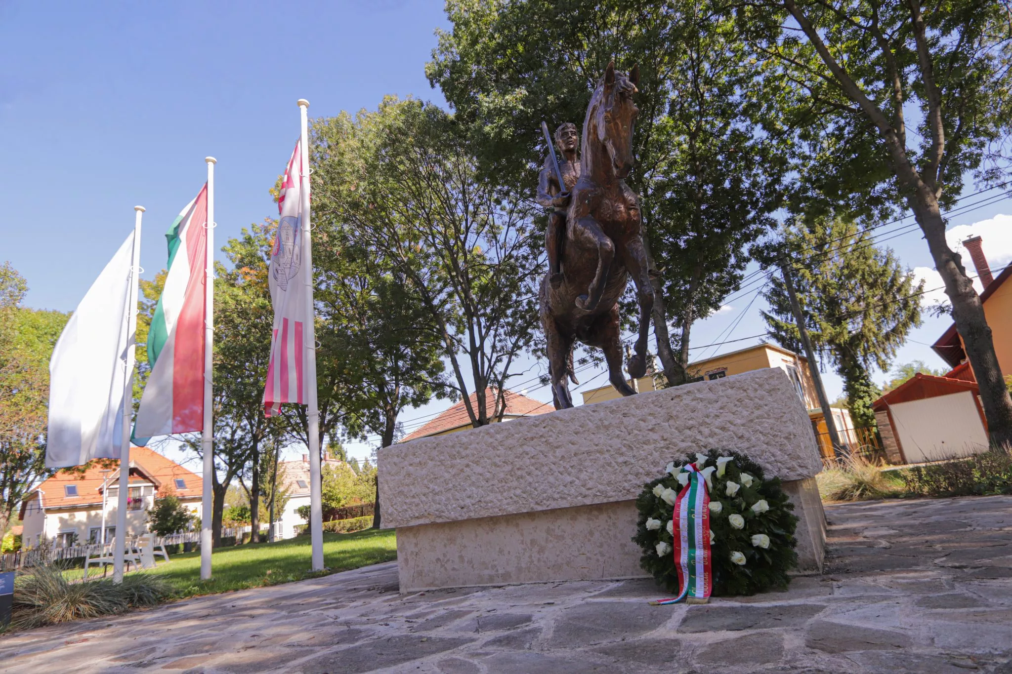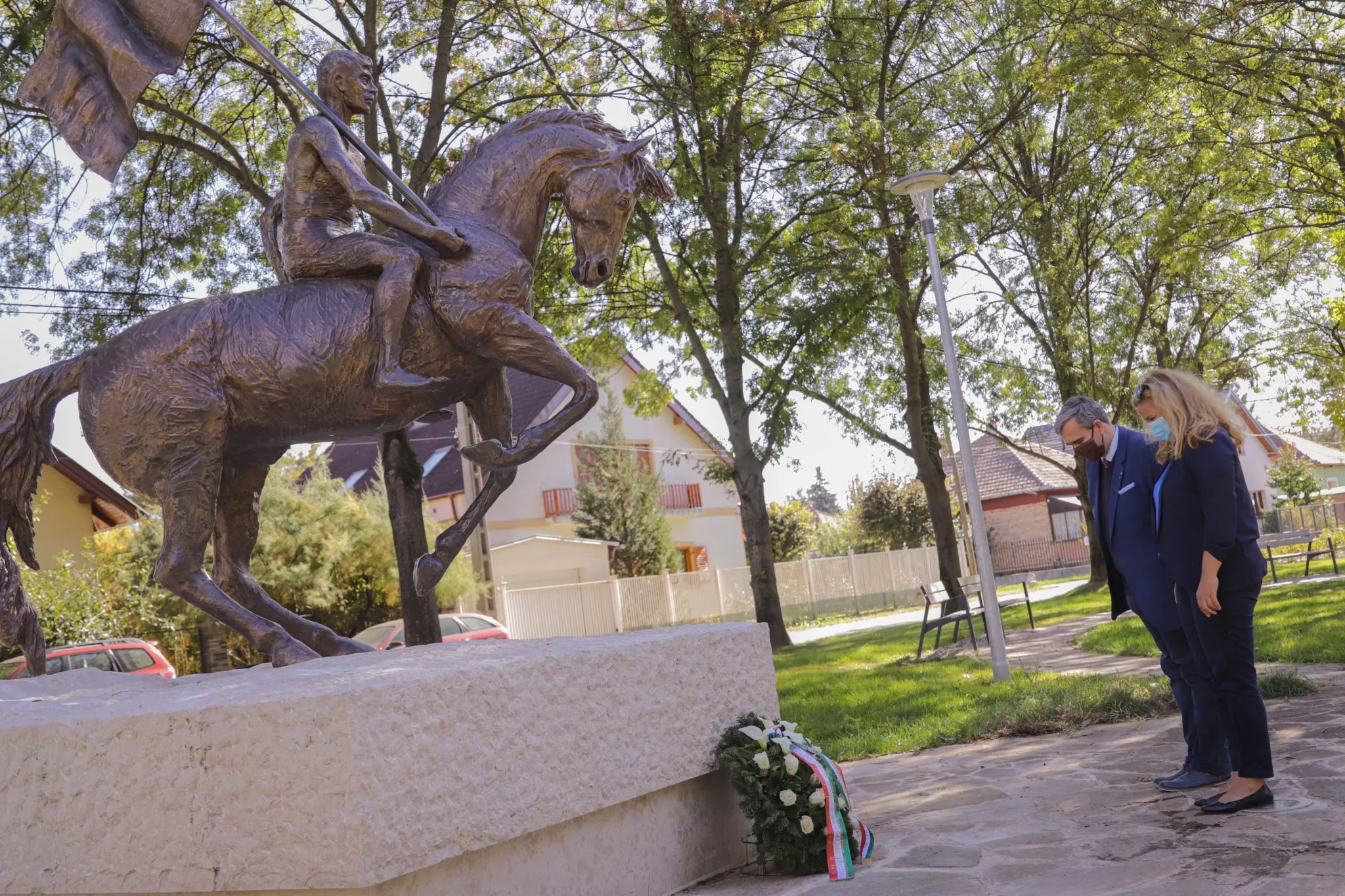 Dr. Kiss László a megemlékezés és tisztelet koszorúját Czetz János szobránál helyezte el, néma főhajtással emlékezve az „aradi golgota” áldozataira.