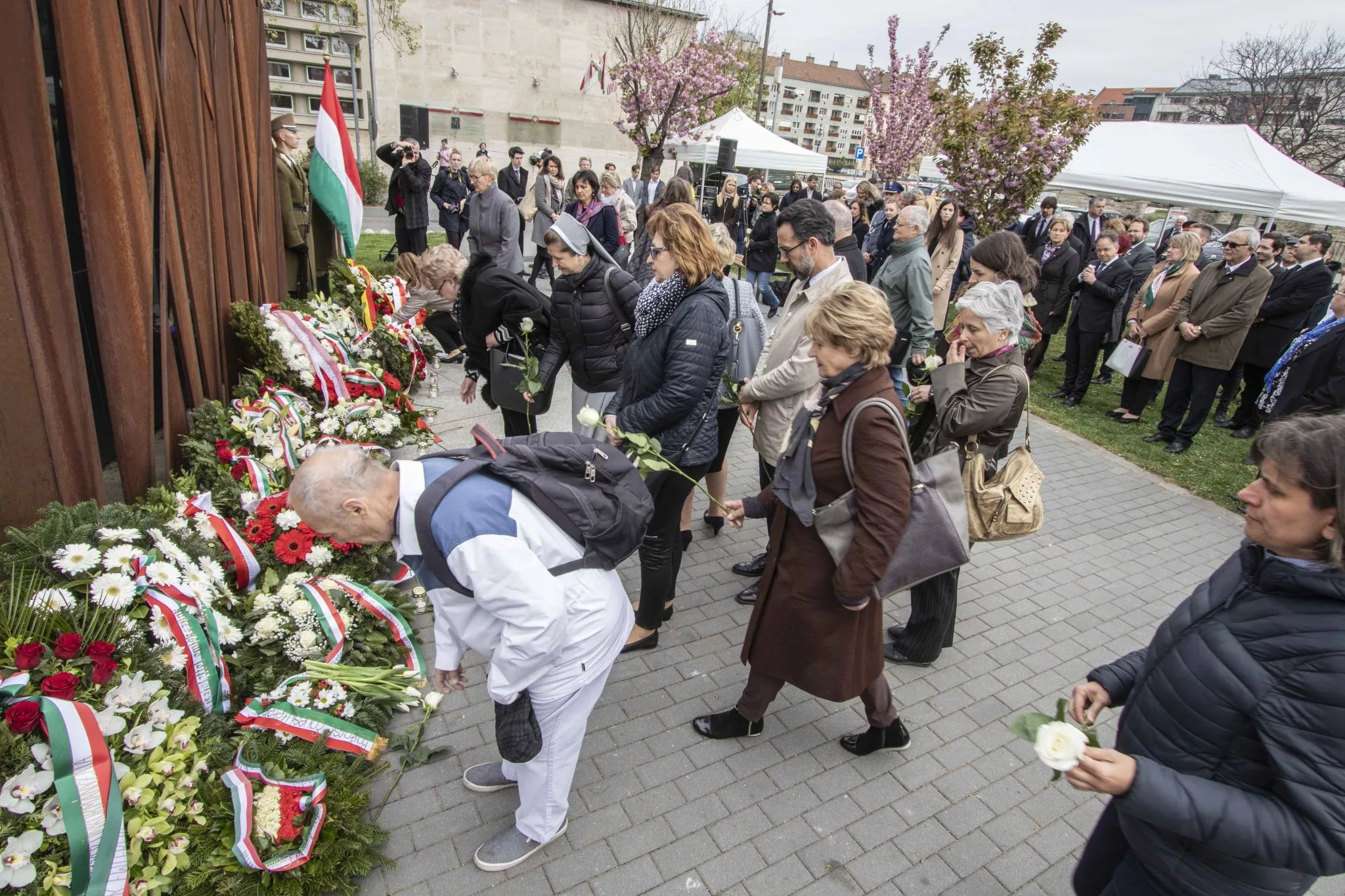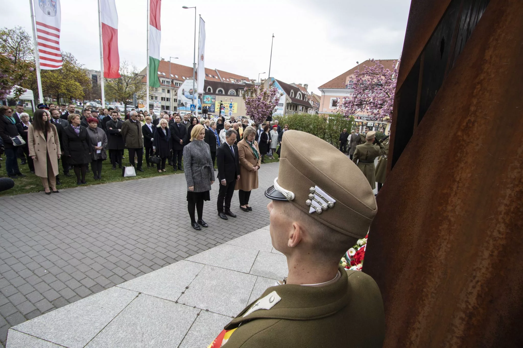 A megemlékezés zárásaként a városvezetők, a lengyel diplomácia képviselői, a pártok, társadalmi szervezetek, fegyveres erők és a helyhatóság képviselői megkoszorúzták az emlékművet.