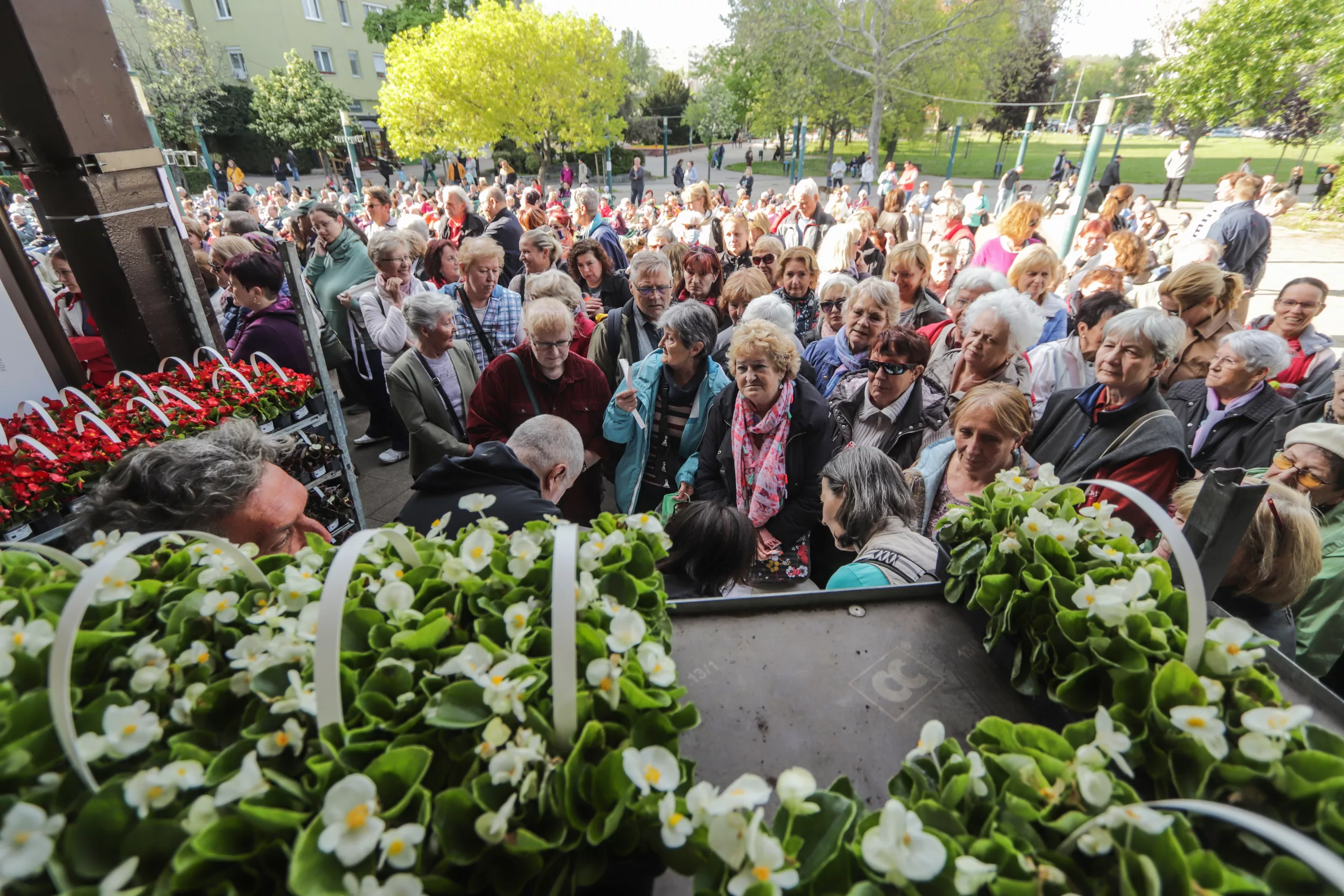 Virágpalánta akciónk keretében igénylőnként 10 tő (azaz 1 tálca) kislevelű árvácskát vagy begóniát biztosítottunk térítésmentesen. Az akción való részvétel feltétele volt az átadás előtti, virágültetéssel és virágápolással kapcsolatos szakmai előadáson való részvétel a Békásmegyeri Közösségi Háznál. A szakmai előadást Borsosné Urbányi Eszter, okleveles kertészmérnök, favizsgáló szakmérnök tartotta, szerencsénkre napsütéses időben. A palánták kiosztásában dr. Kiss László, Óbuda-Békásmegyer polgármestere is segített.
