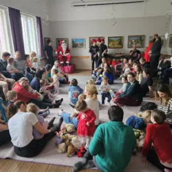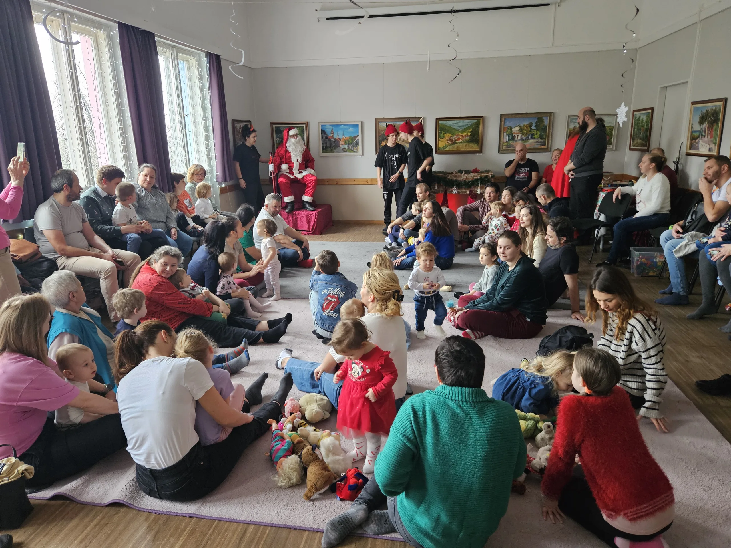 Felfele menet ugyan krampuszok akadályozták a csapatokat, de akik a találós kérdéseikre helyes választ adtak, szaloncukrokat is kaphatttak. A Mikulás ölébe fogadta a gyermekeket, némelyikük énekelt vagy verset szavalt neki. Később még a krampuszok körtáncot is jártak.