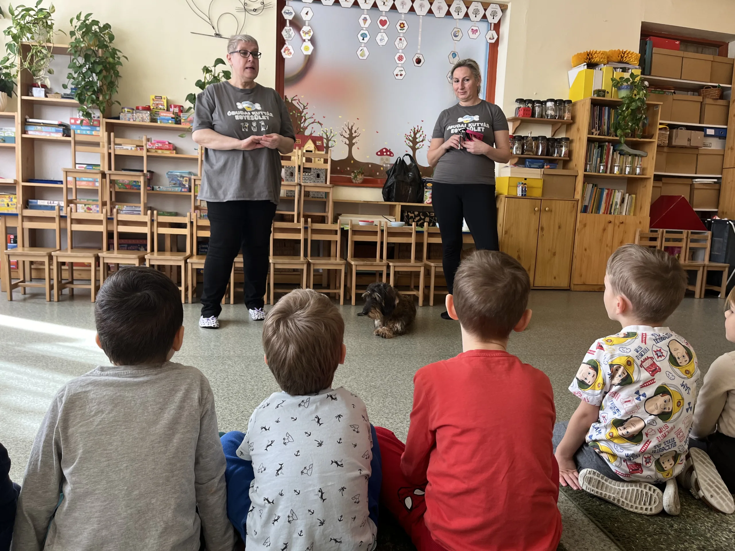 „Nem kutyabemutatókat tartunk, – hangsúlyozza a foglalkozásvezető, – együtt játszunk, és a mozgásos tevékenységek során adjuk át a kutyatartáshoz kapcsolódó információkat, így a gyerekek észrevétlenül, örömmel tanulnak.”