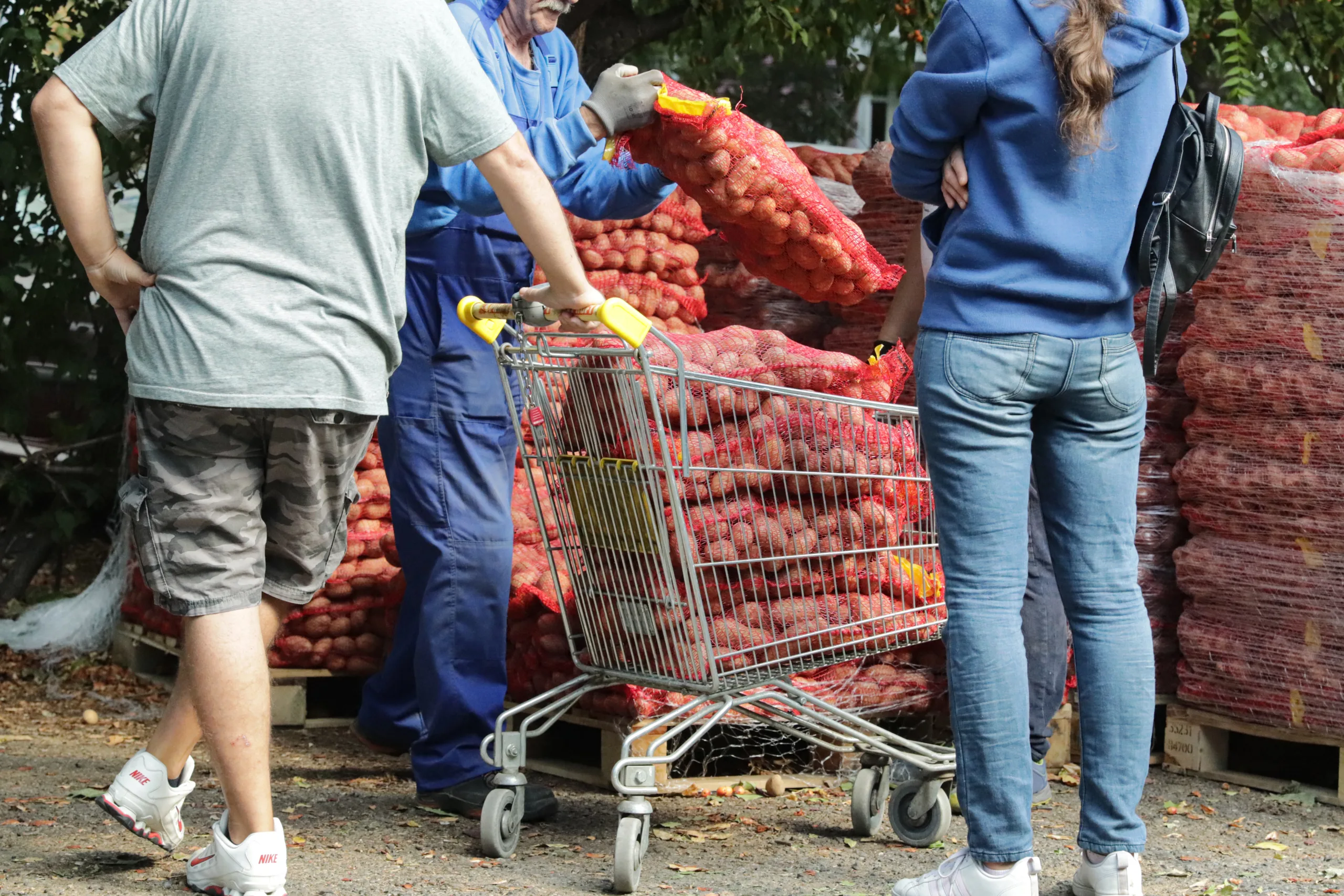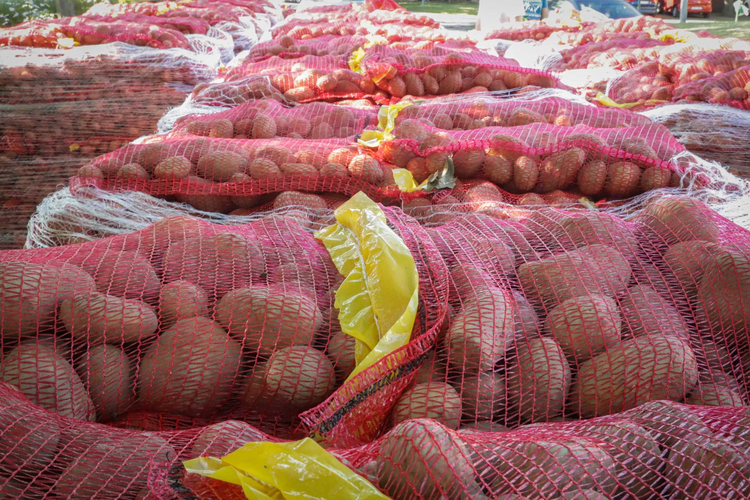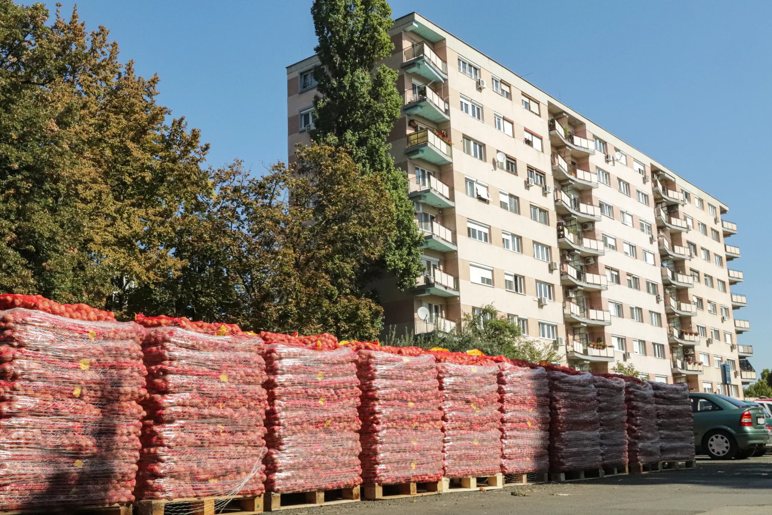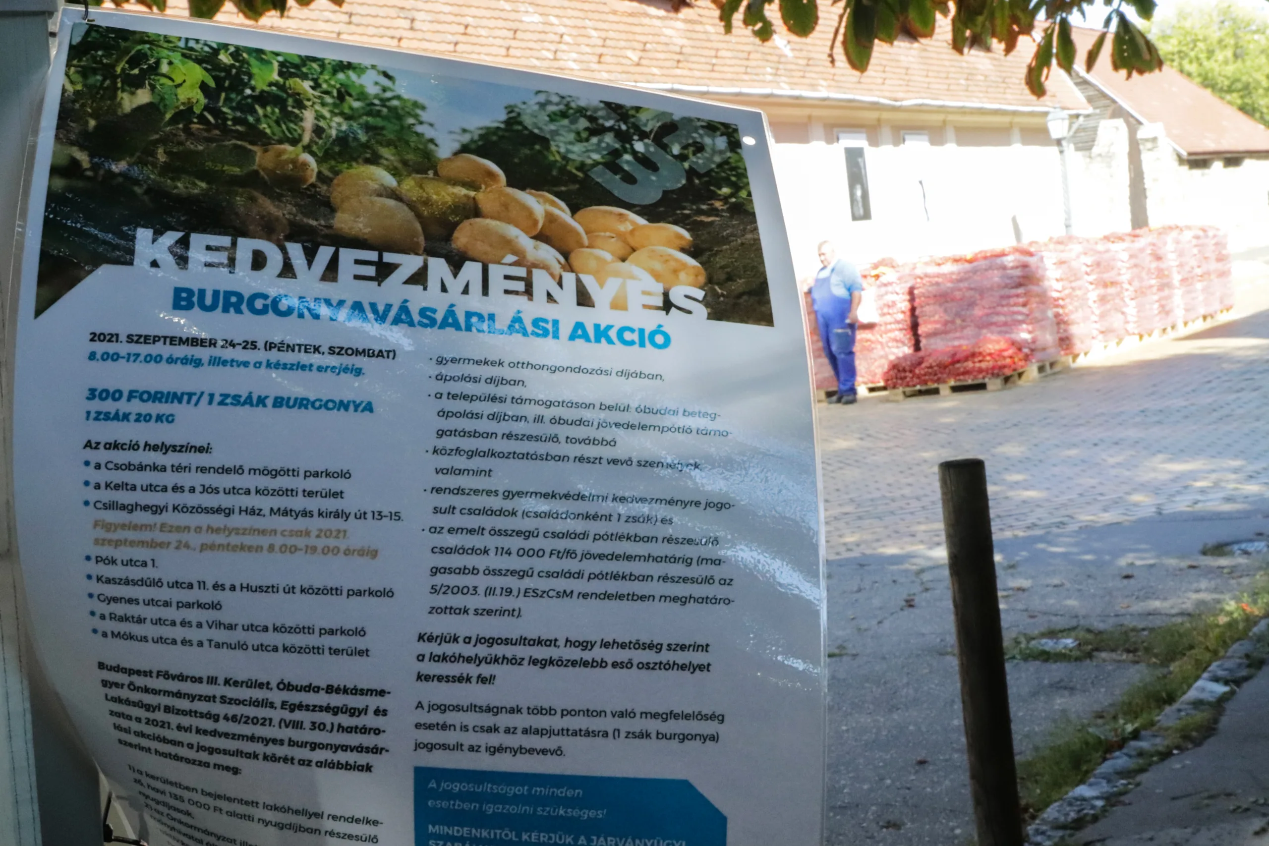 Burgonyaosztás 2021 – ahogy minden évben, akkor is targoncával kellett mozgatni minden egyes osztási helyszínen a több száz tonna burgonyát: