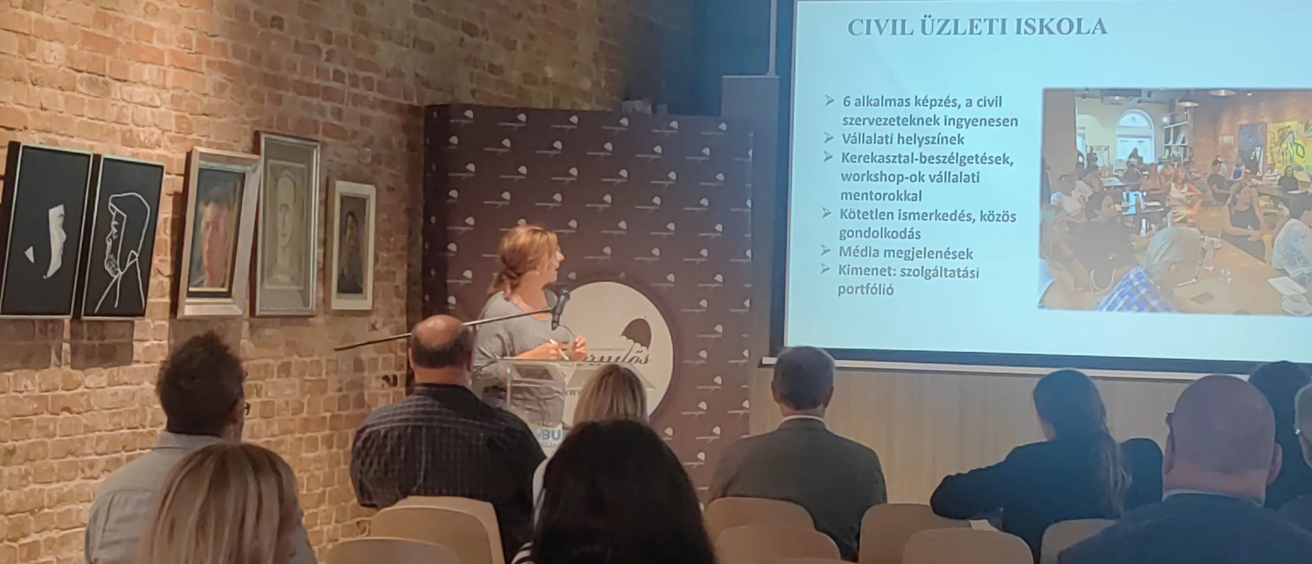 „Üzleti iskolánk a civil, a vállalati és az önkormányzati szektorok között segít kapcsolatot teremteni, amolyan hídszerepet betöltő programként – mondta tájékoztató beszédében Baráth Andrea, Fenntarthatósági, Ifjúsági, Civil és Nemzetiségi Osztályunk osztályvezetője. – Az a törekvésünk, hogy az üzleti környezetben is gondolkodni tudó civilek működhessenek a kerületben, tehát nemcsak anyagi támogatást, hanem tudást is kívánunk nyújtani; ahogyan mondani szokták: nemcsak halat adunk, hanem hálót is.”