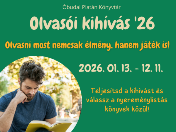 Az idei felnőtt olvasói kihívás az Óbudai Platán Könyvtárban 2026. január 13-án indult és december 11-ig tart.