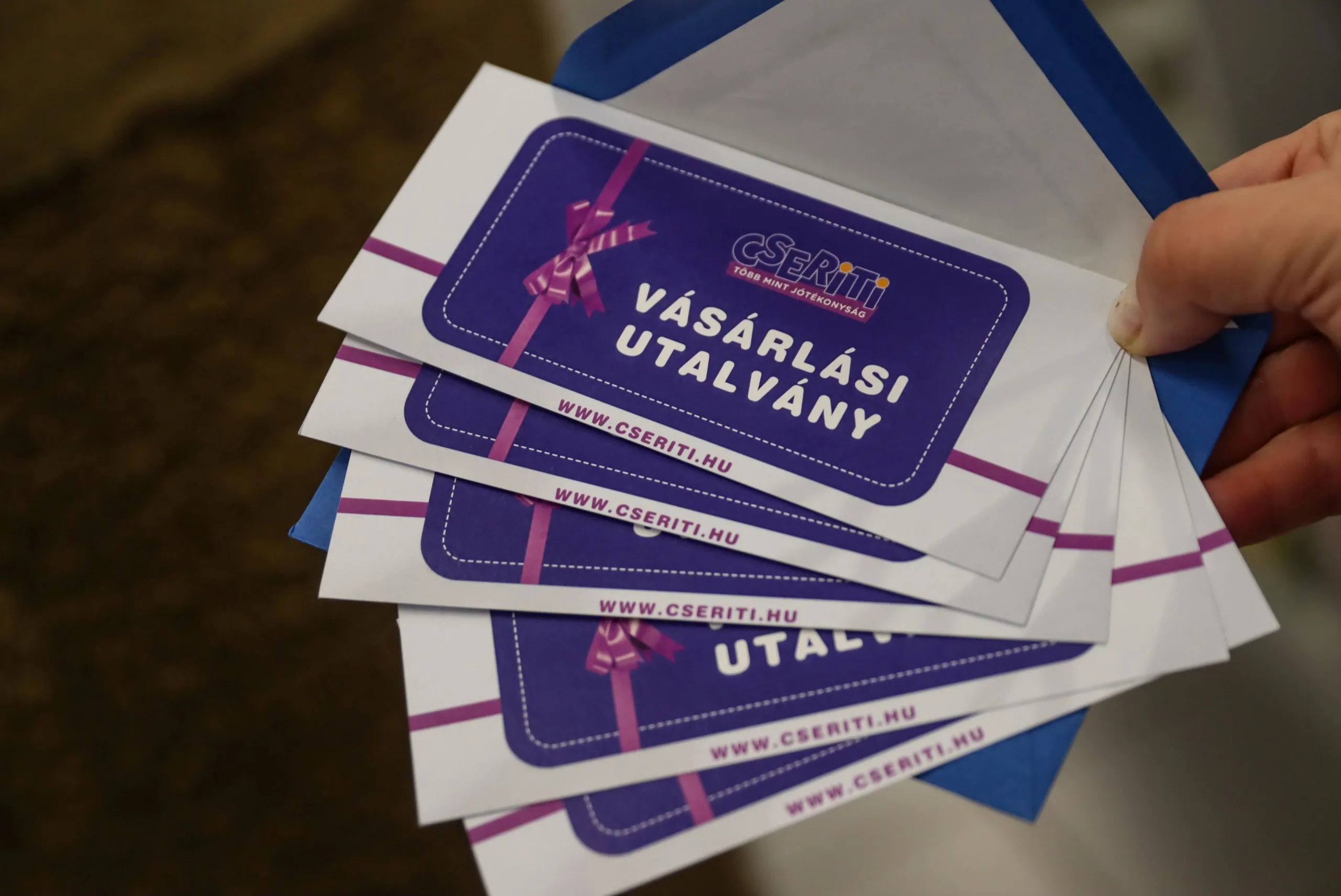A Cseriti a karácsonyi ünnepekről sem feledkezik meg: az idei esztendőben is kibővítette az adománykeretet és további öt kerületi család számára 20-20 ezer forint értékű, tehát összesen 100 ezer forintnyi ajándékutalványt biztosítanak. Az utalvány tetszőlegesen váltható be a Cseriti két kerületi boltjában, az üzletek széles kínálatából.